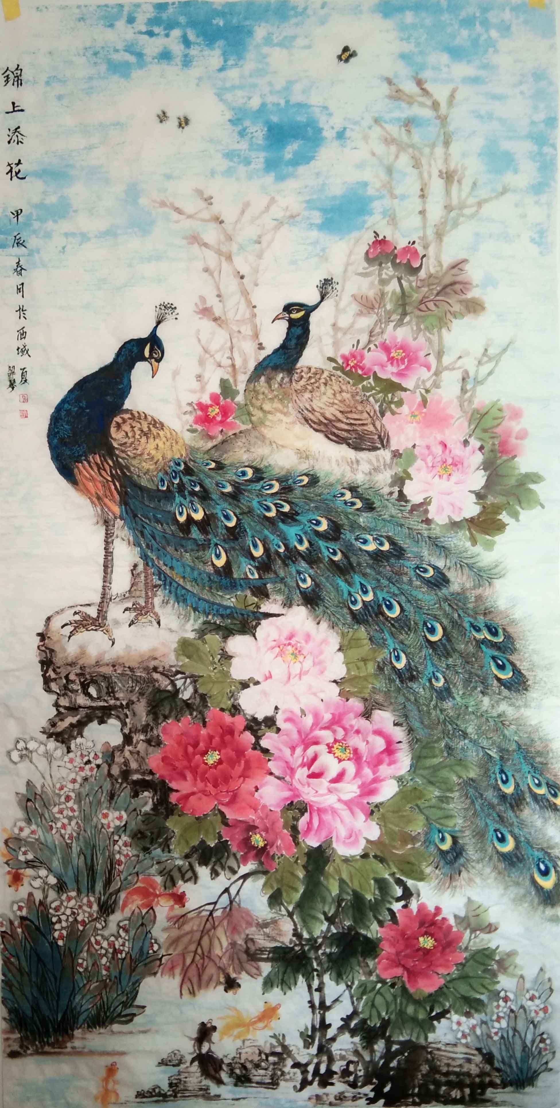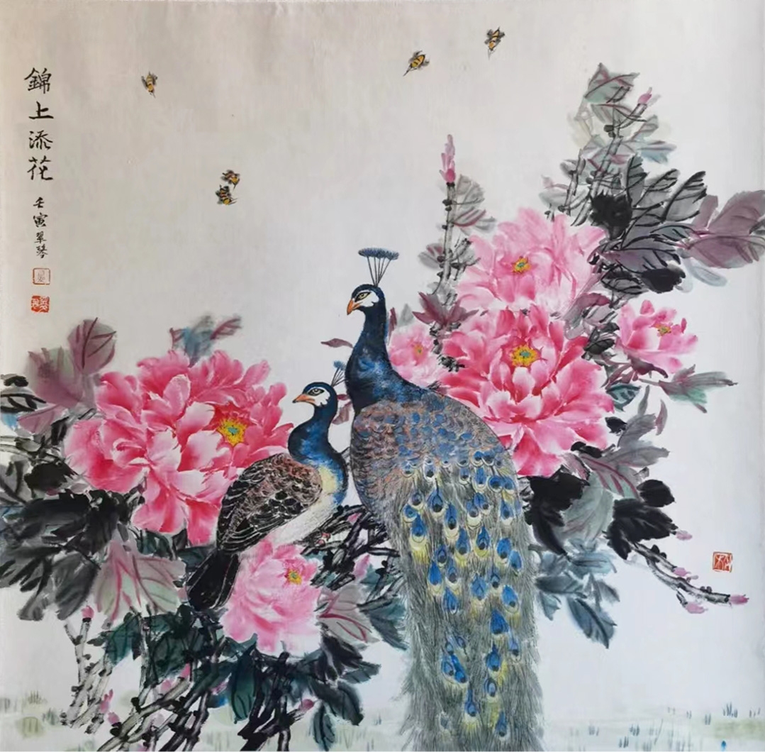 2022年3月国画《锦上添花》入展:华彩巾帼新疆女画家线上美术作品展。