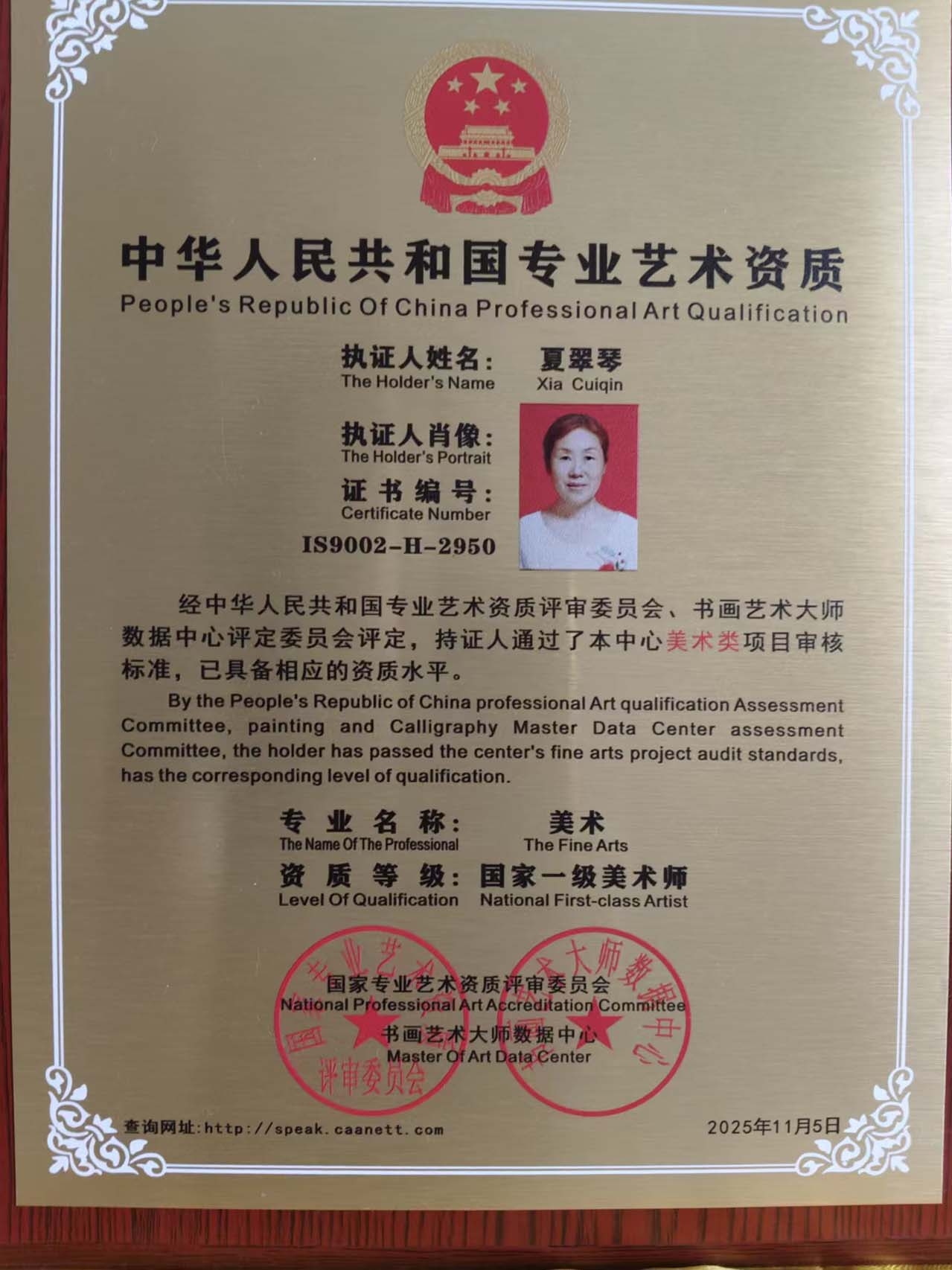 一级书法师