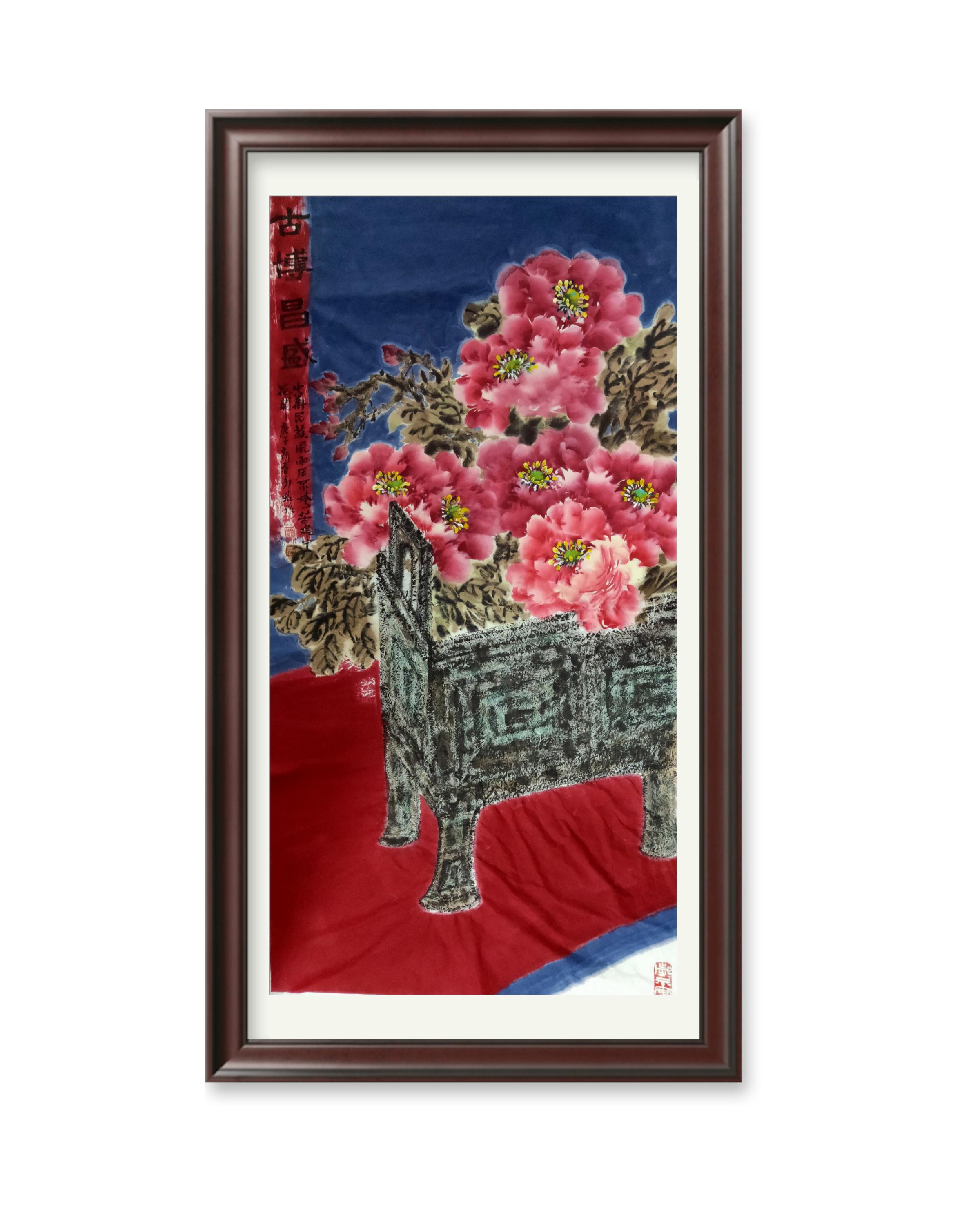 金陵女画家邹红善画花鸟画,梅花,游鱼,紫藤等皆精,尤擅画牡丹名世,她喜用浓艳的色彩和淋漓的水墨,奔放的笔触,色块和灵动的书写线条,所以在她的画中艳丽的色彩充满视觉的张力和热情的感染力,深受大众的喜爱,丰富了人们的精神生活,这正是繁荣时代的艺术表征。