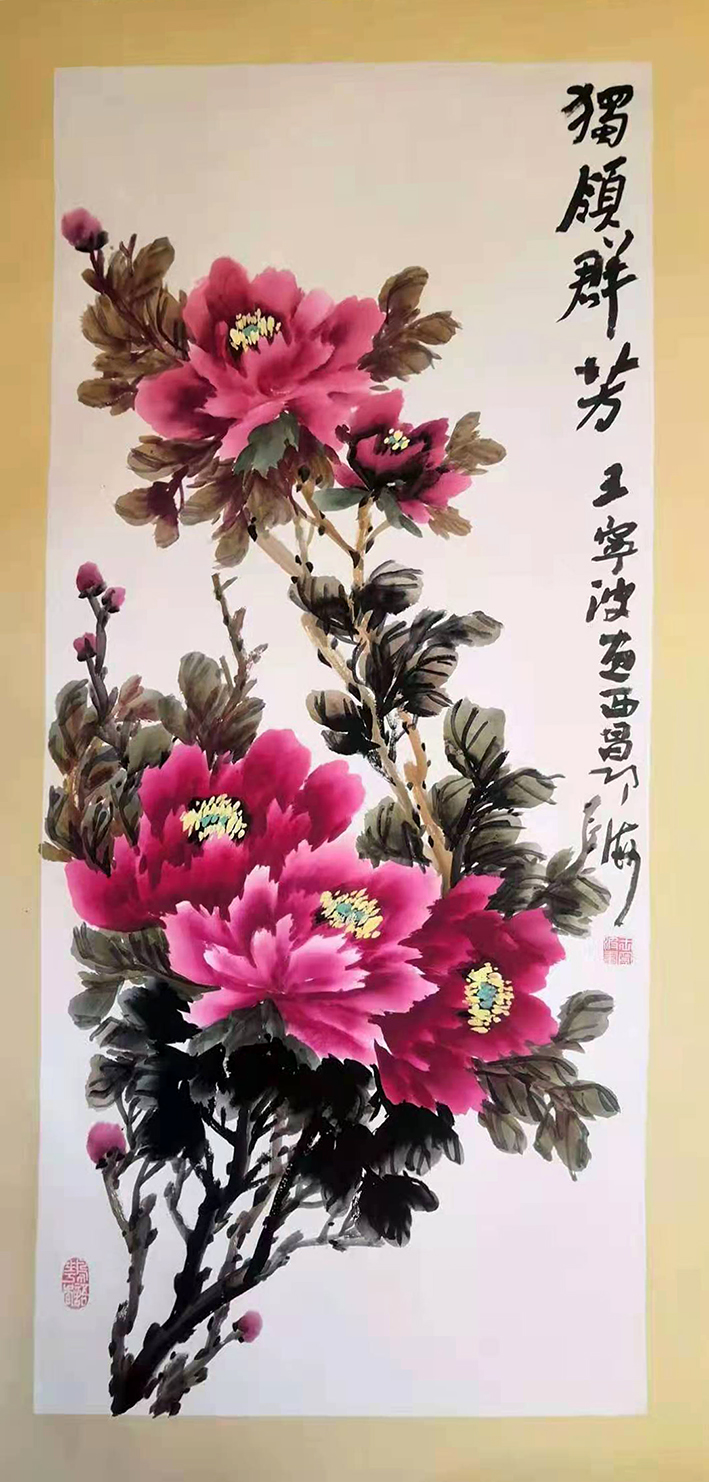 王宁波,字宁波,号大龙,别署玉龙阁主人,一九六四年生于四川泸州,大学文化。攀枝花美术家协会会员,自幼随父学习白描花鸟人物山水,后随一了研习中国画,擅长牡丹,勤奋好学淡泊名利,其牡丹被多家收藏,有其独立的画风和艺术审美追求,深受藏友喜爱。进几年来多次到云南,洛阳,观察牡丹,画了大量的写生,为艺术创作垫定了扎实的基础。