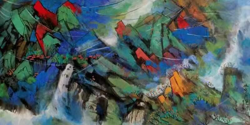 尤其是拜著名画家石齐先生为师以后。更是迈上了一个高峰。其画面形成了三象合一的境界。
