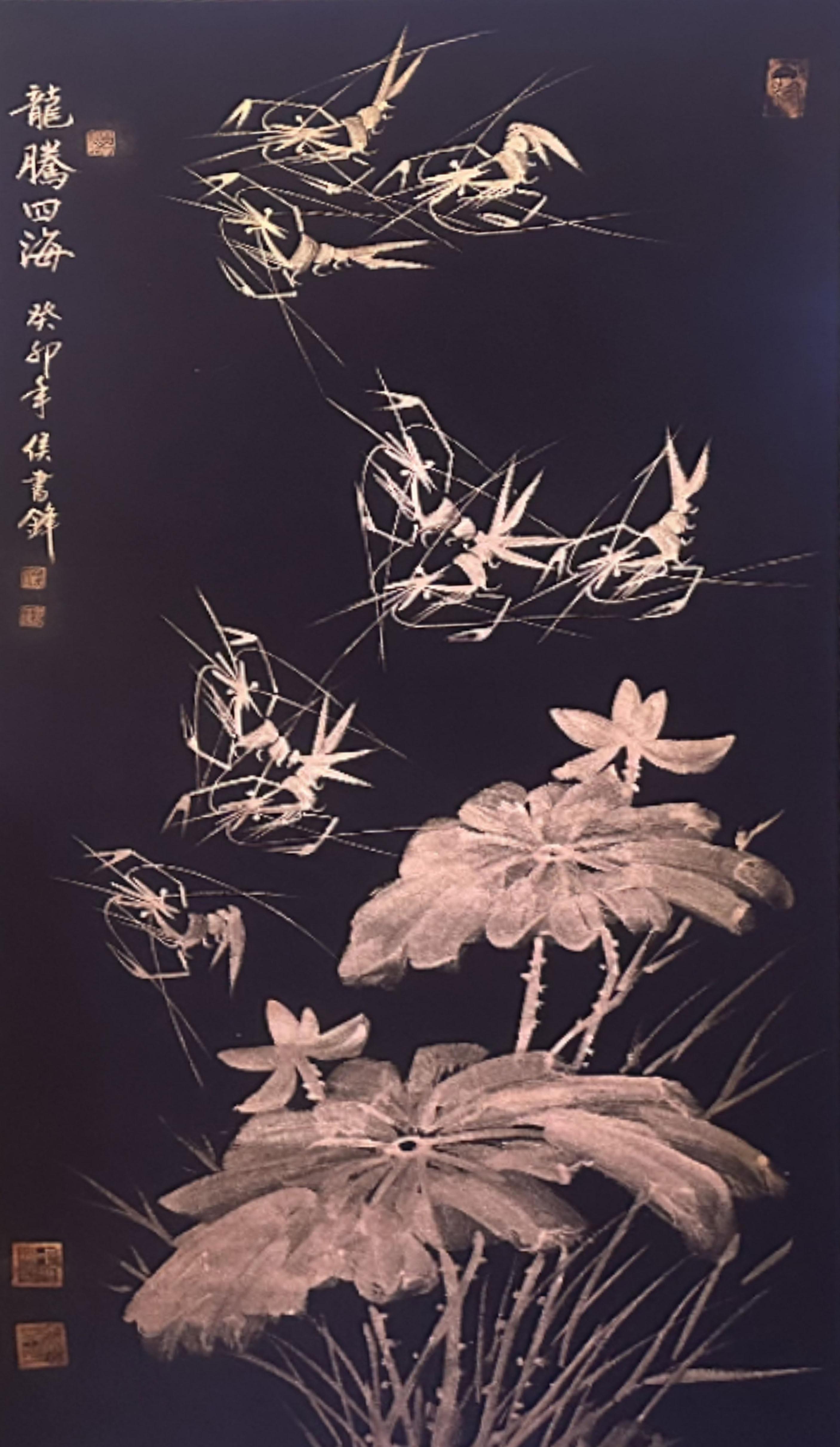 与范曾一起作为书画展的作品《黑宣金墨虾》2015年苏富比拍卖296万元成交;